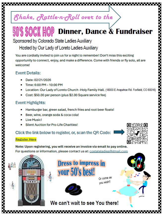 Where: Our Lady of Loreto Catholic Parish (18000 E Arapahoe Rd, Foxfield, CO 80016)